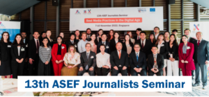 The 13th ASEF Journalists Seminar (ASEFJS13) is a training-oriented event bringing together young journalists below the age of 35 years from Asia and Europe. It is also an official side event of the ASEM Foreign Ministers Meeting.