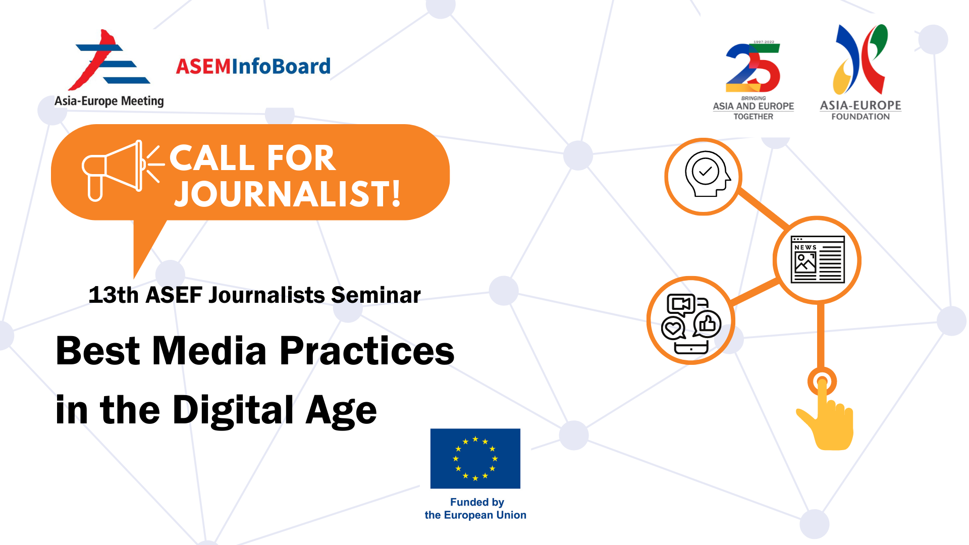The 13th ASEF Journalists Seminar (ASEFJS13) is a training-oriented event bringing together young journalists below the age of 35 years from Asia and Europe. It is also an official side event of the ASEM Foreign Ministers Meeting.
